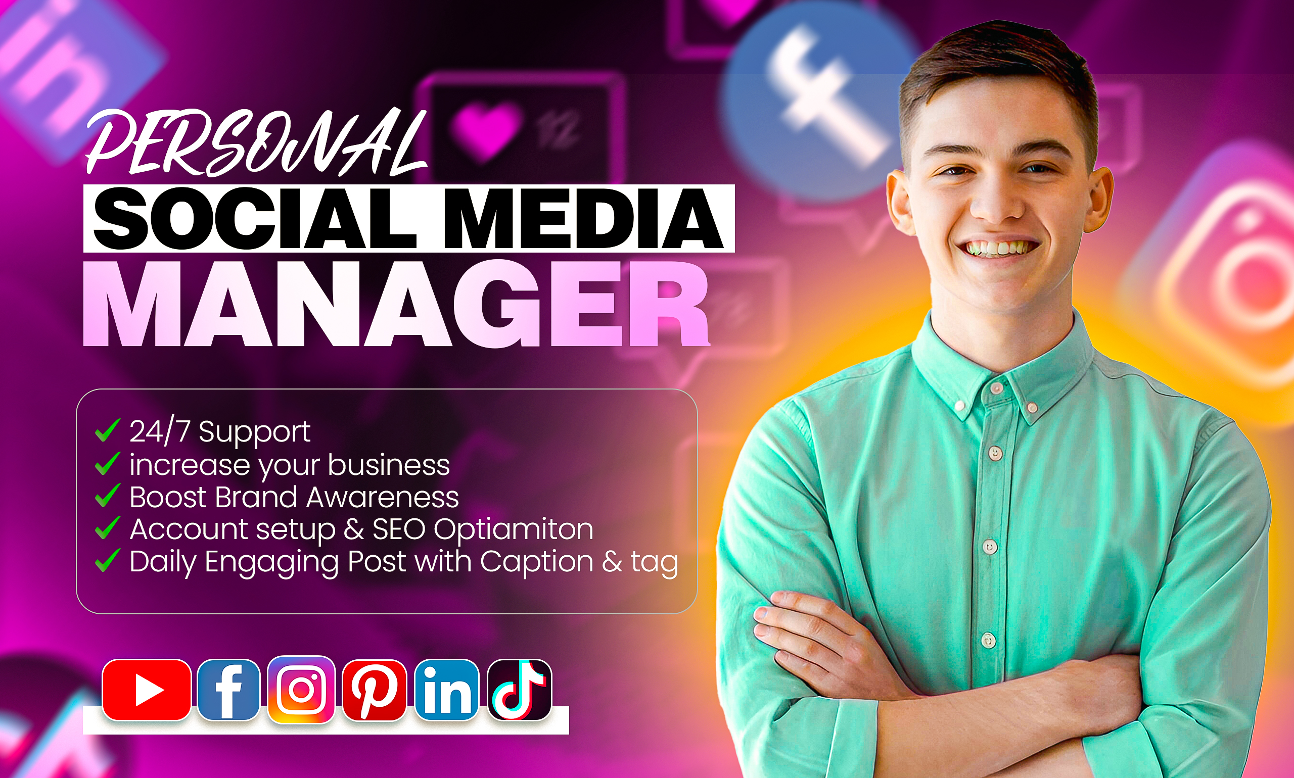 Are you looking for a Personal Social Media Manager who can handle complete setup and SEO optimization to grow your business?