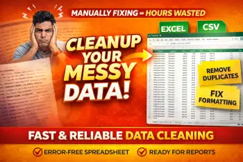 I help clean, format, and structure messy Excel or CSV data so your spreadsheets become accurate, organized, and ready to use. My focus is on turning raw data into a clear and structured format that works perfectly for reporting, analysis, and dashboards. Whether your file comes from manual entries, exports from systems, or multiple sources, I carefully review the dataset to remove errors and organize it into a clean and professional spreadsheet.