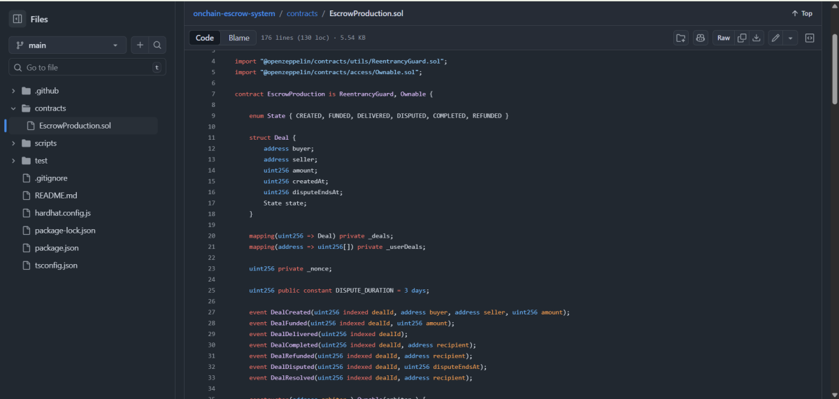 • Hardhat unit tests, deployment scripts, and local testing setup