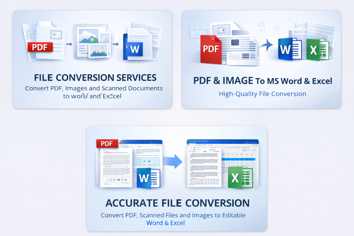 I provide accurate and professional file conversion services to help you turn your documents into clean, editable, and well-formatted files. If you have PDFs, scanned documents, images, or old files that need to be converted into Word or Excel, I am here to help.