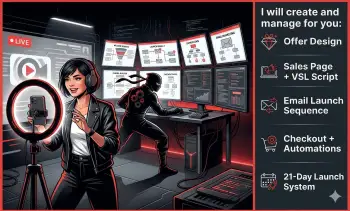 Over a 21-day engagement, I handle the entire backend of your first digital product launch. While you focus on creating content and engaging with your audience, I build the full monetization infrastructure behind the scenes.