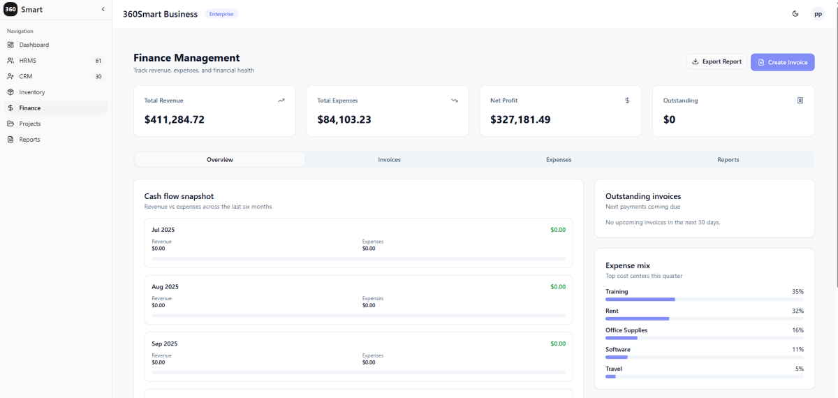 I can provide you fully scalable and designable management system for the business which include finance, HR, invoice , Stock management etc.