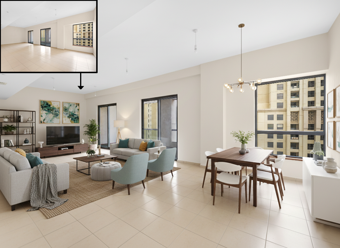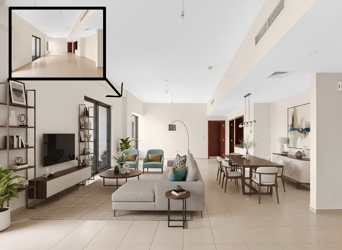 Empty rooms can often look cold and small, making it difficult for potential buyers to visualize the true potential of a space. My Virtual Staging service solves this problem by adding realistic, modern 3D furniture and decor to your property photos. Whether it is a cozy lounge, a formal dining area, or a stylish master bedroom, I ensure that the scale, lighting, shadows, and textures match the original room perfectly for a 100% natural look.
