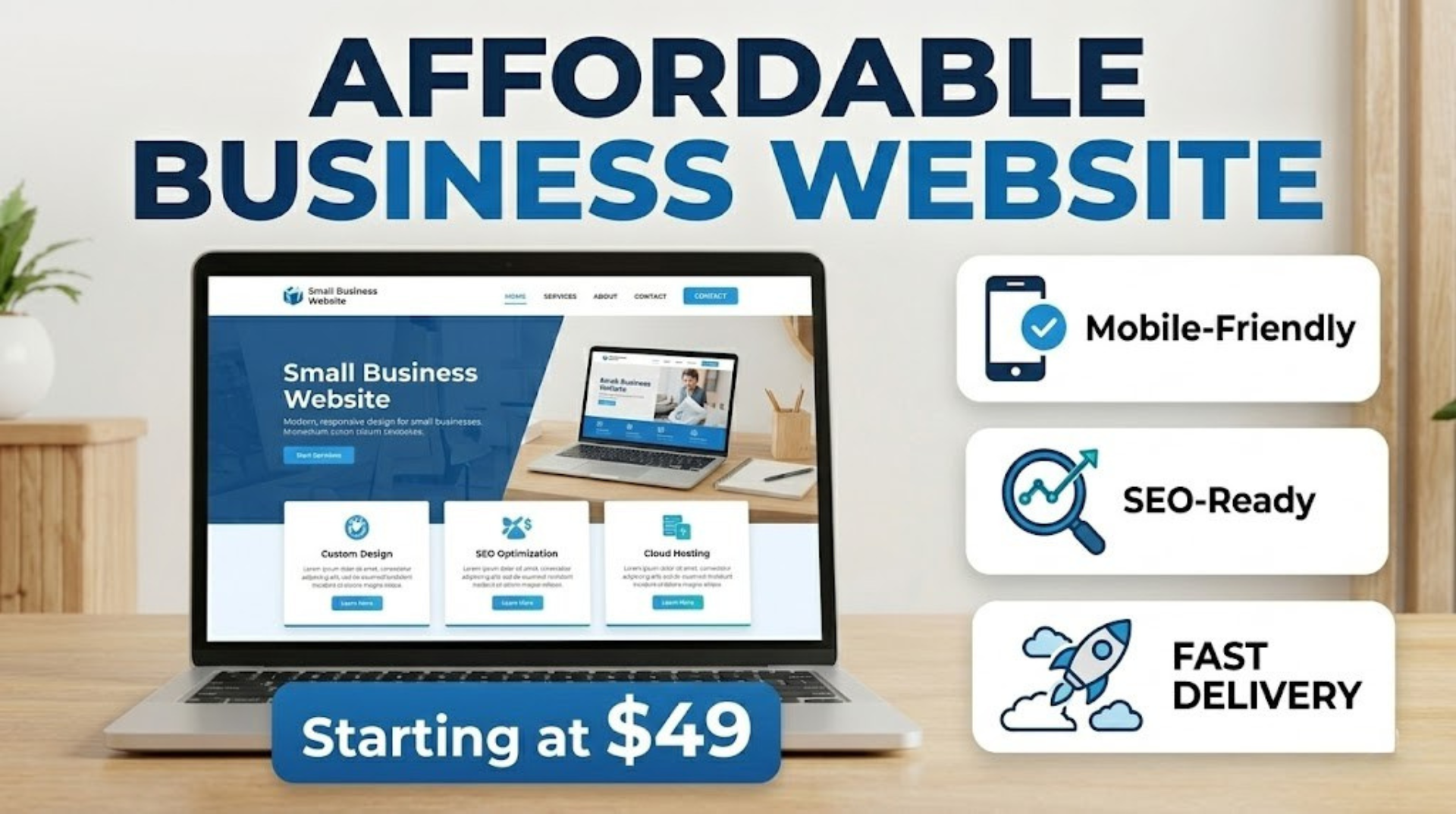 3-page website: Homepage, About, Contact. Mobile-friendly and clean.