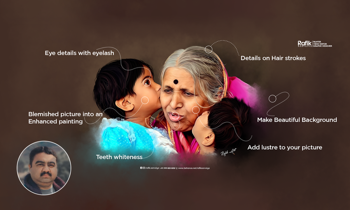 I am a Professional Digital Portrait Artist specializing in turning ordinary photos into high-quality, realistic, and emotionally powerful artworks. My focus is on fine details, expressions, and storytelling, so every piece I create feels personal, meaningful, and unique. I work on custom digital portraits, illustrations, photo-to-art transformations, and creative designs for gifts, social media, branding, and wall art.