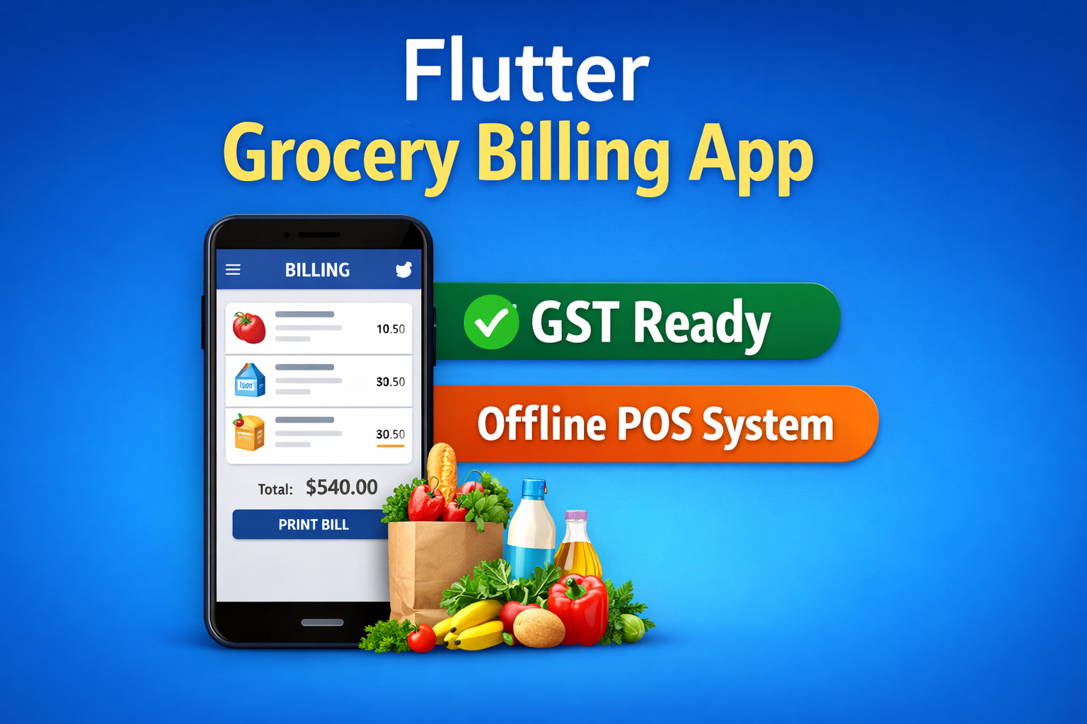 Ready-to-use Flutter grocery billing mobile app for small shops and retail stores.