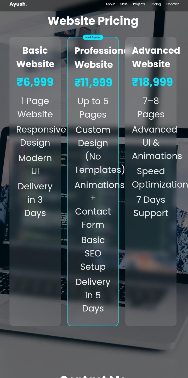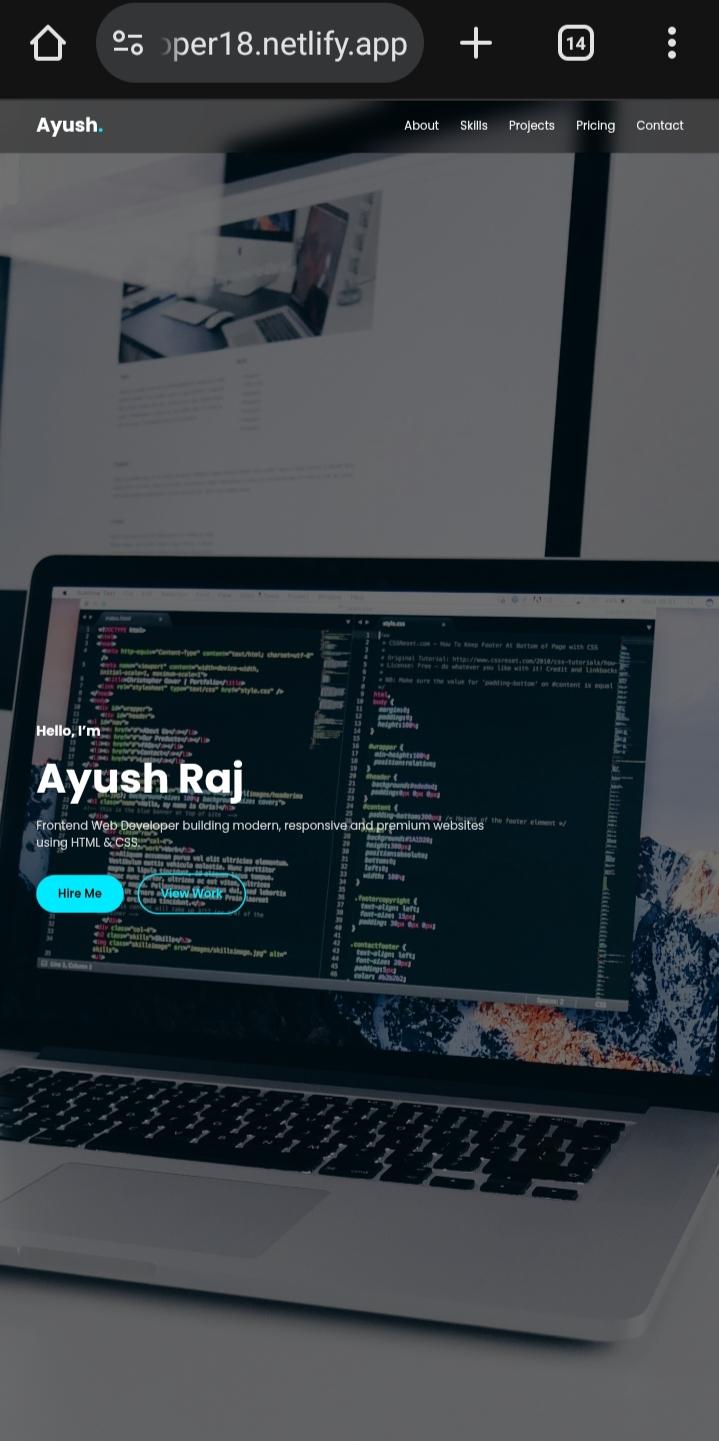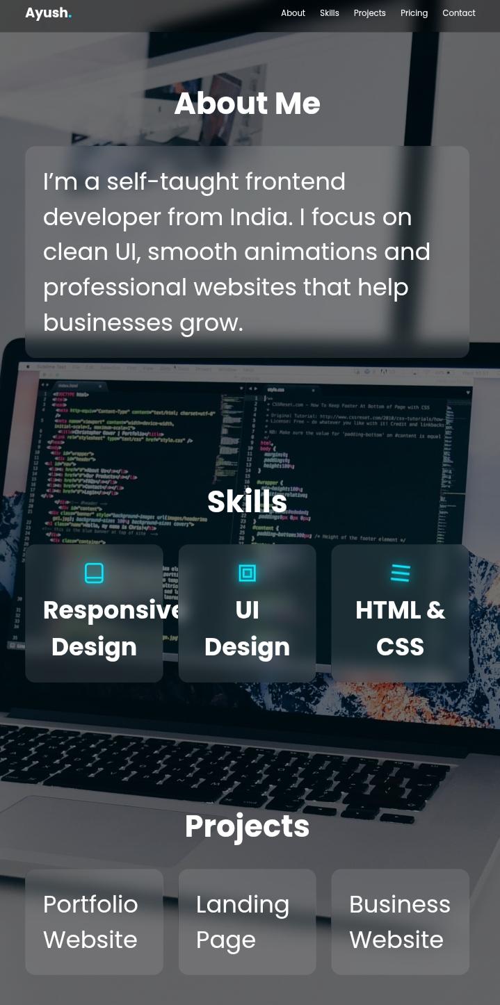 Hi I am Ayush Raj an HTML and CSS website developer who creates clean simple and responsive websites. I focus on mobile friendly design fast loading speed and modern layouts. I build personal portfolios landing pages and small business websites based on client requirements. I believe in clear communication timely delivery and providing quality work at an affordable price.