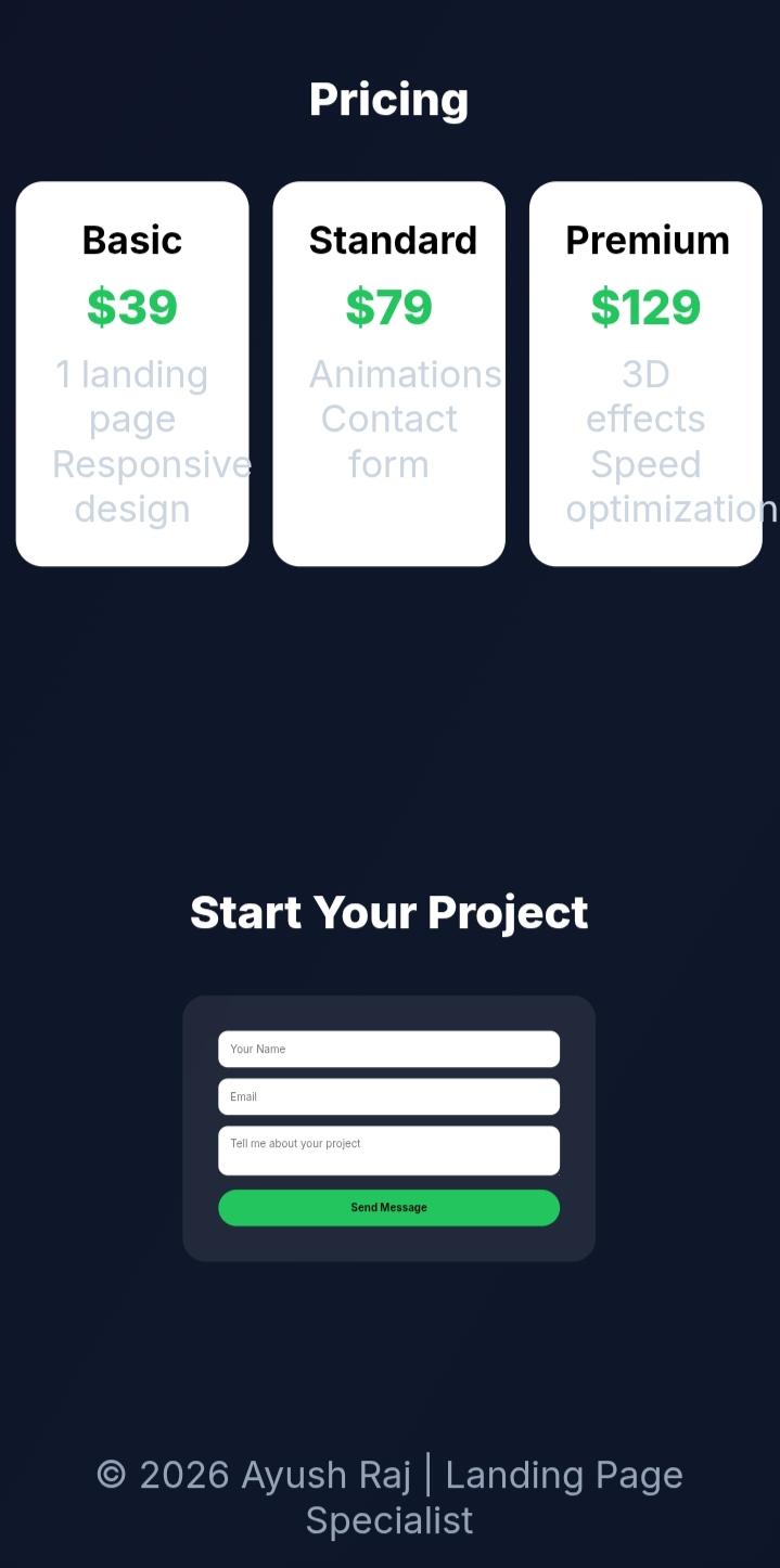 This service focuses on responsive landing pages that work perfectly on mobile, tablet, and desktop.