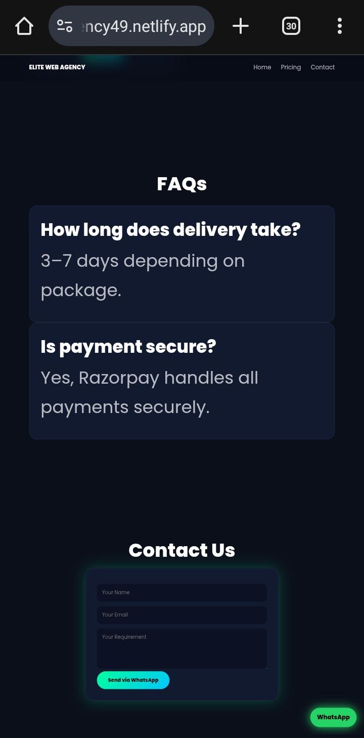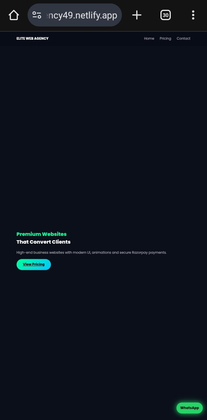 Premium AI-style business website with animations, responsive design and WhatsApp integration.