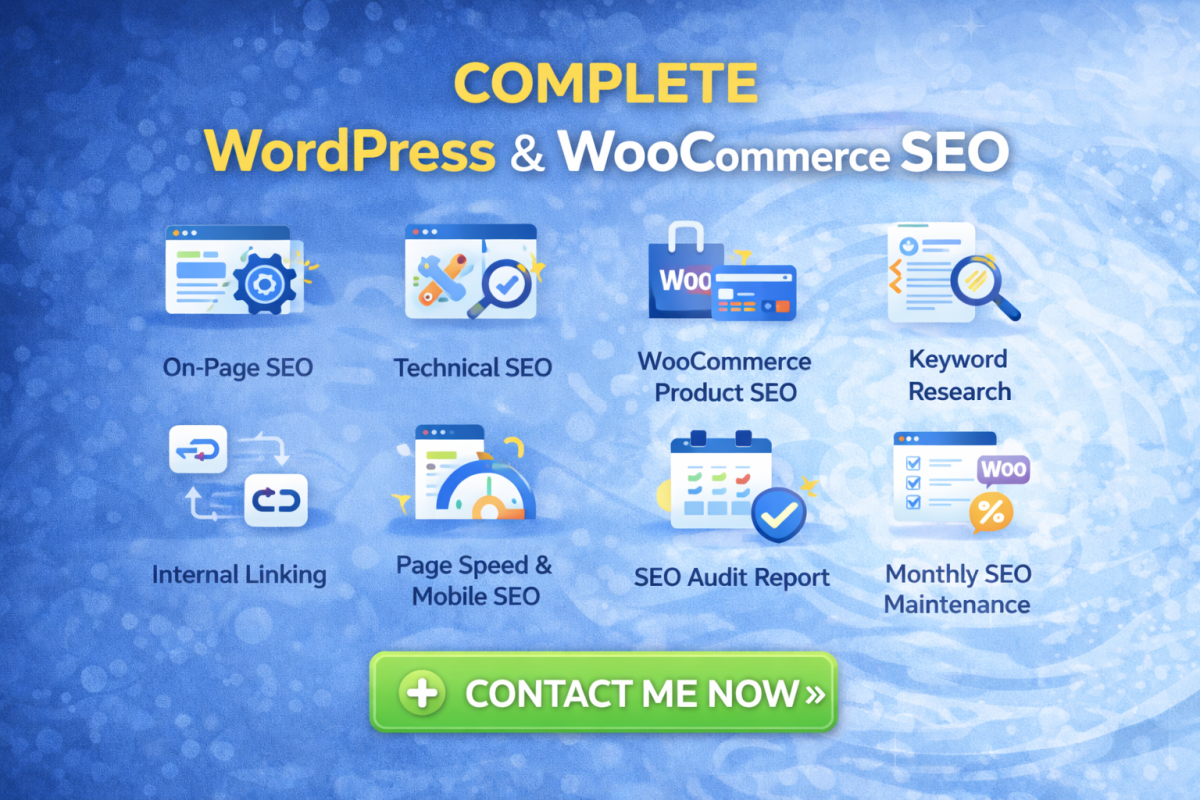 If your WordPress or WooCommerce website is not ranking on Google, the problem is usually poor SEO structure, technical issues, or missing optimization.