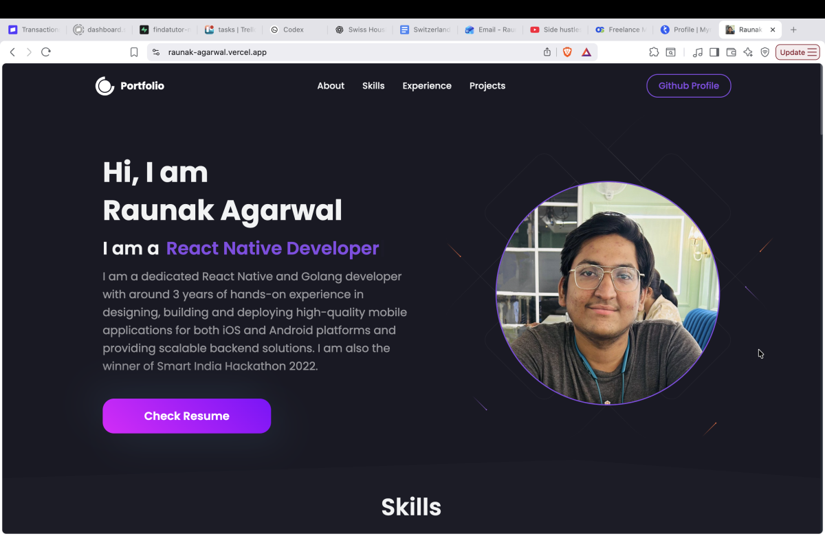 I am a dedicated React Native and Golang developer with 3 years of hands-on experience in designing, building and deploying high-quality mobile applications for both iOS and Android platforms and providing scalable backend solutions.