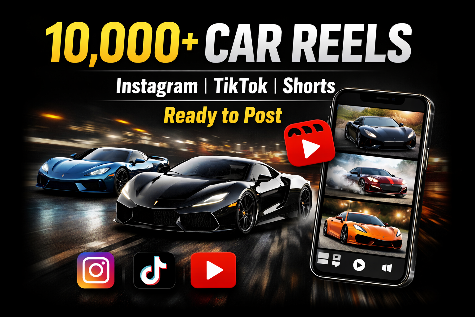 10,000 Car Reels Bundle for Instagram, TikTok and YouTube Shorts (High Quality Content)