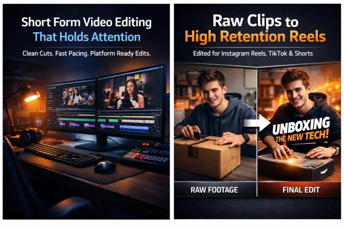 Professionally edited short-form vertical videos (9:16)