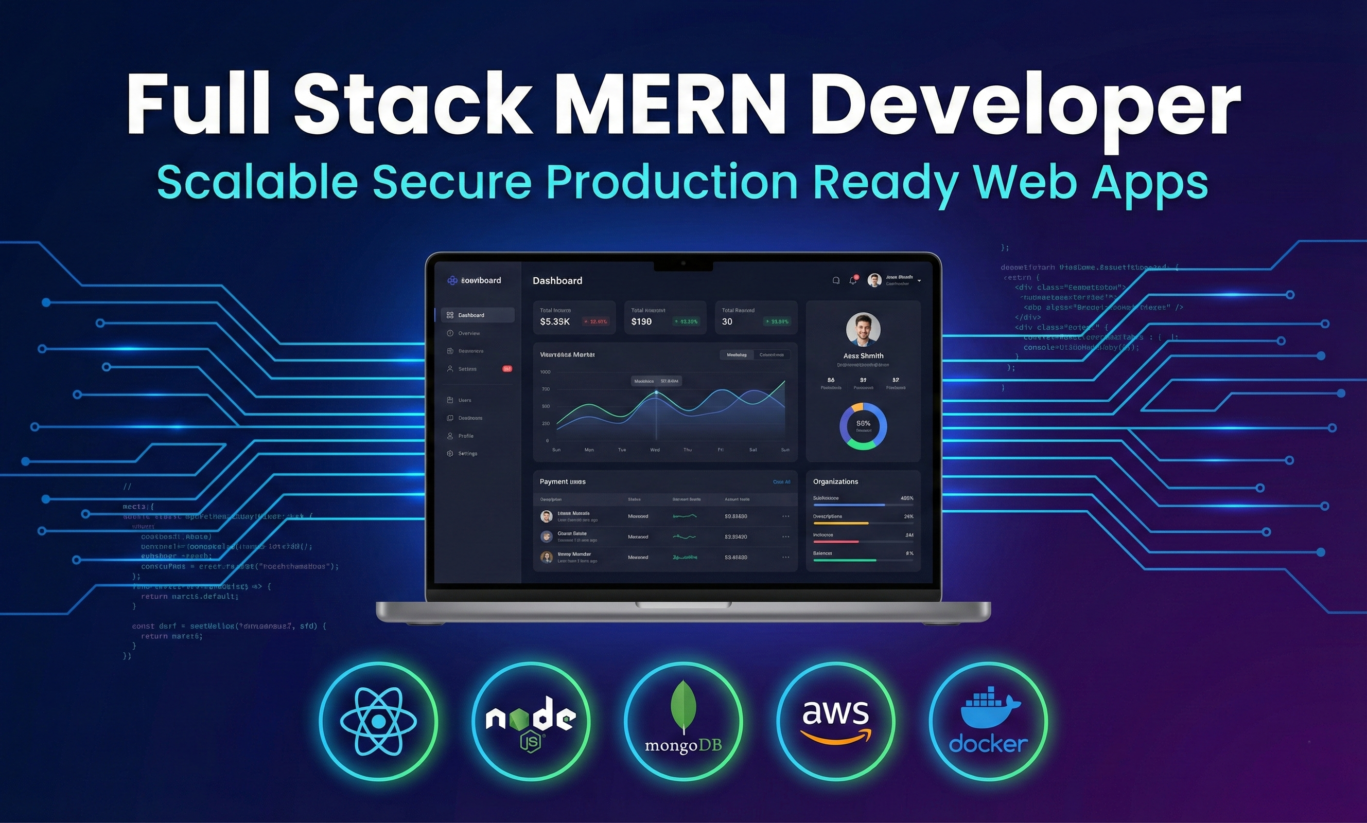 I am a Full Stack MERN Developer with hands on experience building scalable and secure web applications using React JS, Node JS, Express and MongoDB. I develop responsive user interfaces, design secure REST APIs, implement authentication systems and real time features. I also deploy applications using Docker, AWS EC2, CI CD and Nginx, ensuring reliable and production ready solutions.