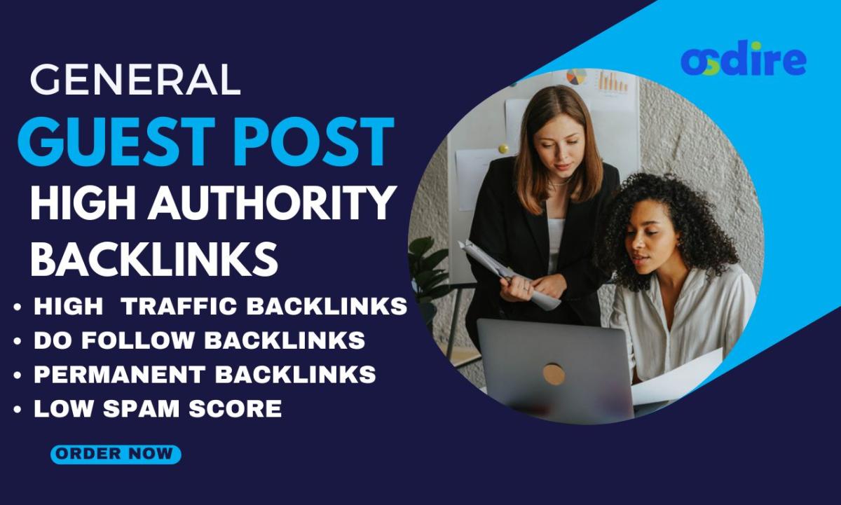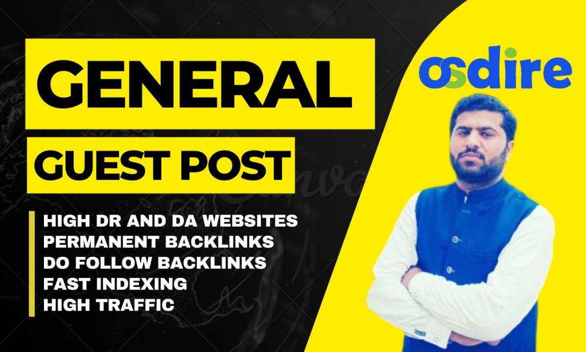 I offer high-quality guest posting services on general blogs with high domain authority (DA 40+ to DA 70+). This is a great way to boost your website SEO, gain dofollow backlinks, and increase your online visibility.
