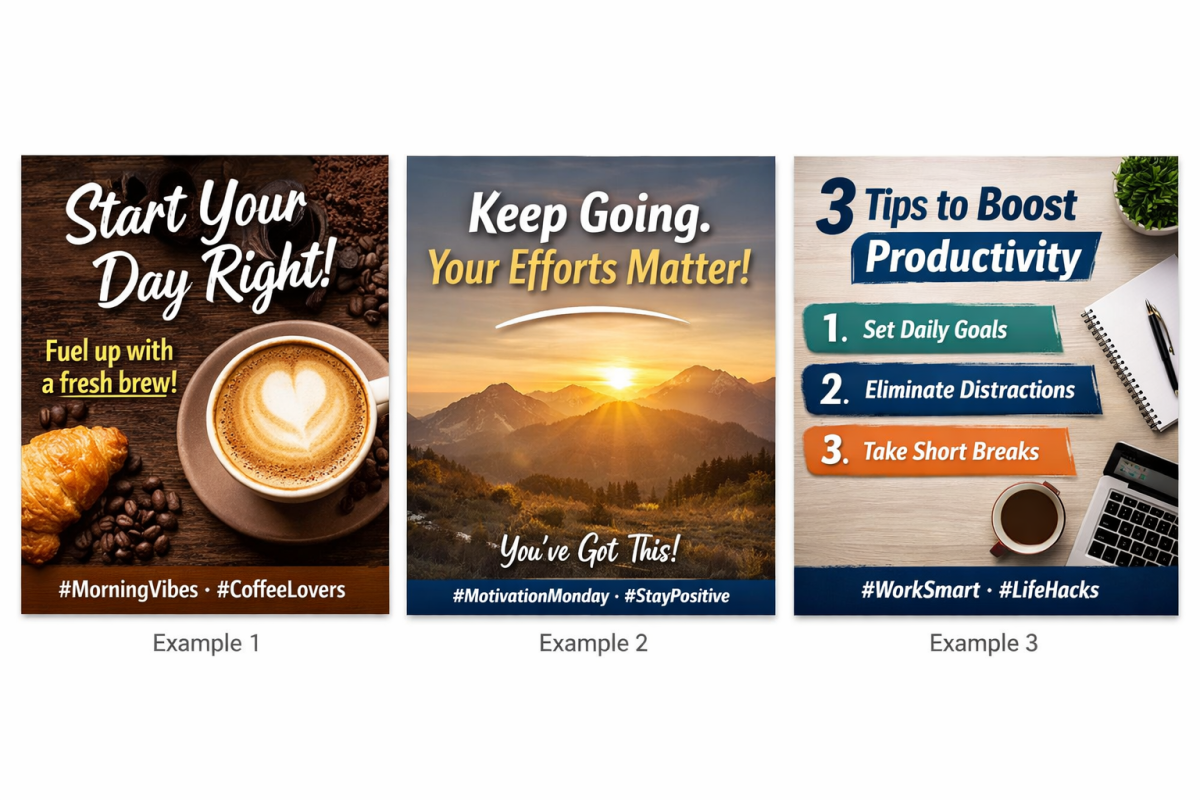 • Catchy captions aligned with your brand voice