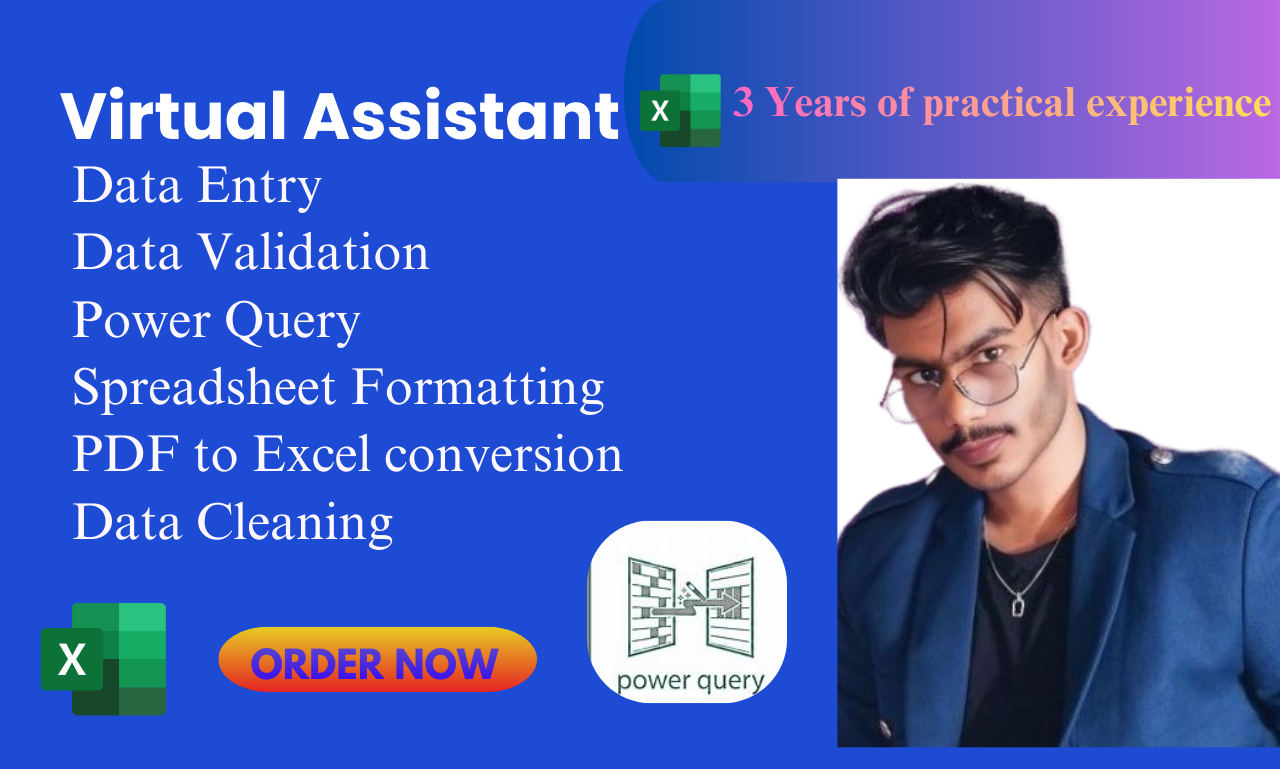 I will manage Excel data entry, cleaning, formatting, pivot tables and charts. I am a dedicated Data Entry and Excel Specialist with 3 years of experience helping clients organize and manage their data accurately. What I Offer Data Entry, Data Cleaning, Pivot Tables, Charts, Formulas, PDF to Excel, Google Sheets and Power Query. Why Me Attention to detail On time delivery Full Data Privacy and Security Your data is fully protected and handled with care Let us get started!