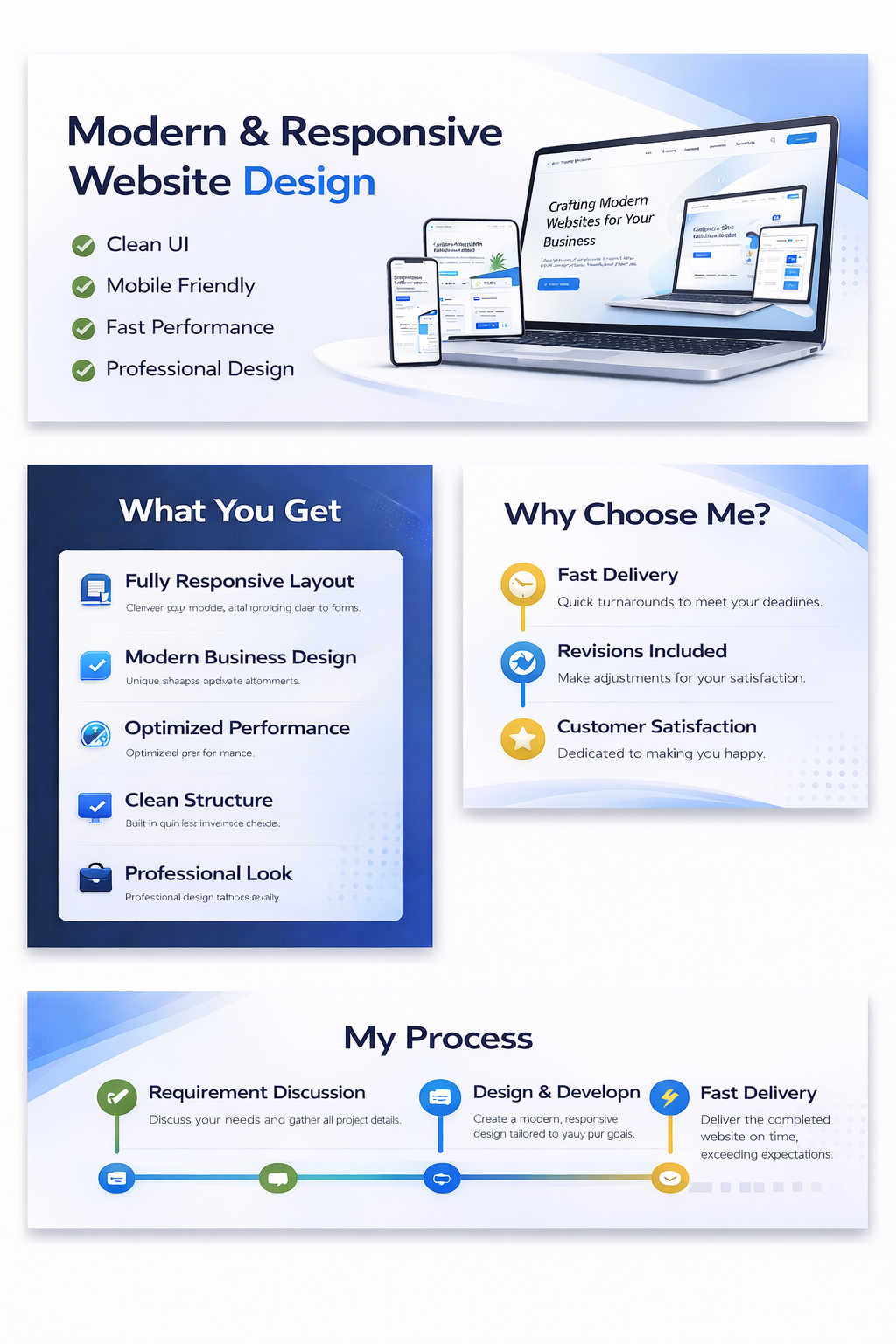 Attention to detail matters — from spacing and typography to overall visual balance. My goal is to deliver a website that feels professional, trustworthy, and aligned with your business growth objectives. I am committed to providing quality work that supports your success in the digital world.