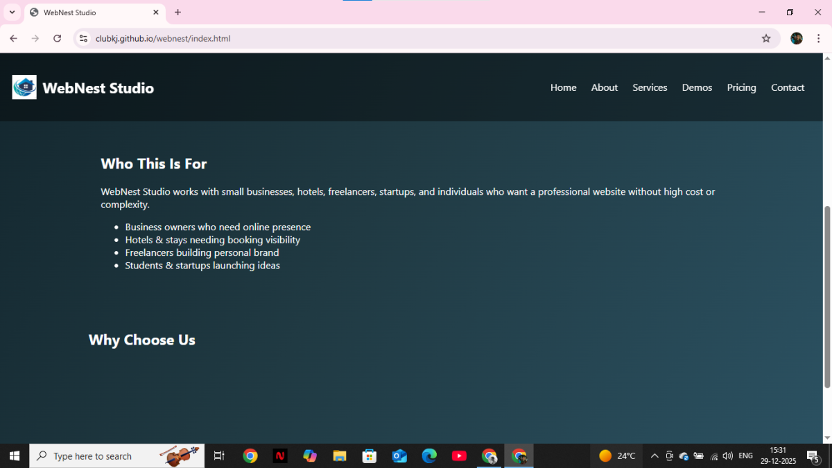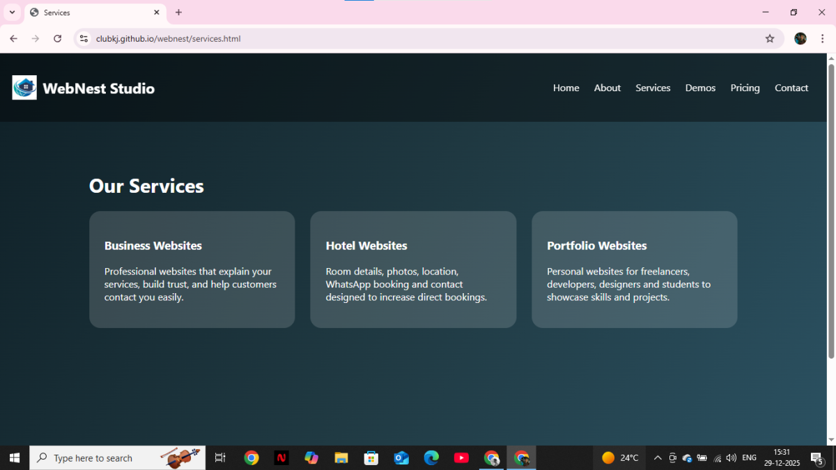 A clean and professional website for individuals or small businesses. Perfect for showcasing services, portfolio, or basic business information. Mobile-friendly, fast loading, and easy to update.