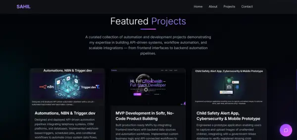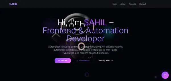 Hi, I am Sahil, a passionate web developer focused on building clean,modern, and responsive websites. I specialize in creating portfolio websites, business websites, and frontend web applications using HTML, CSS, JavaScript, React js, and Tailwind CSS. I focus on writing clean code, building user-friendly interfaces, and ensuring websites work smoothly on all devices. I believe in clear communication, understanding client requirements properly, and delivering work on time.