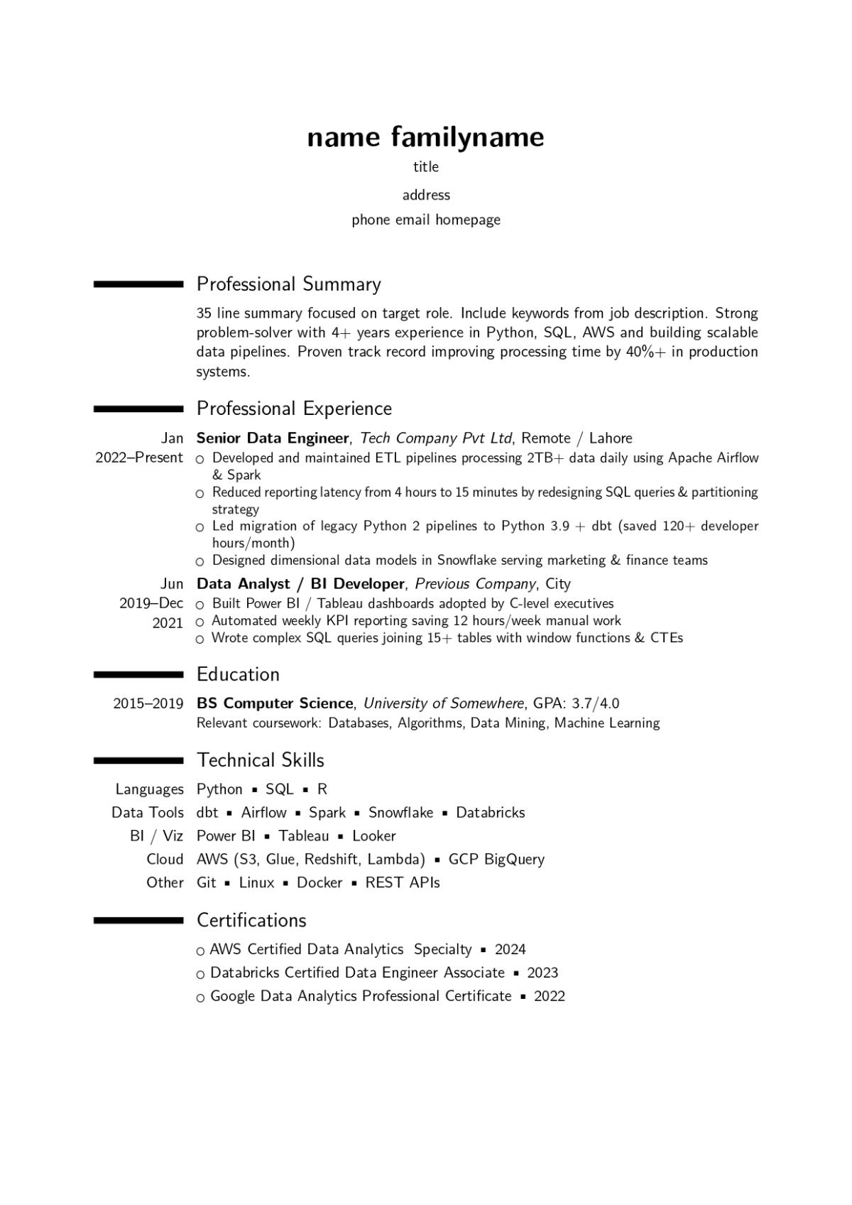 I will design a clean, modern CV or resume in LaTeX to provide you with a professional, well-structured, high-quality document. LaTeX is widely used in academia, technology, and research because it produces consistent formatting, excellent typography, and a polished layout that looks professional on any device.
