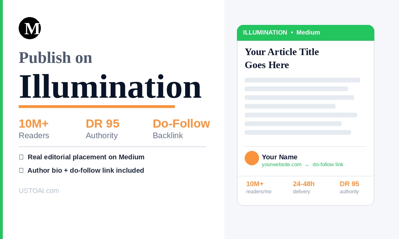 Most guest posts go unread. Illumination's editorial standards mean your content reaches readers who actually engage, share, and follow. One quality placement here outperforms dozens of low-authority backlinks.