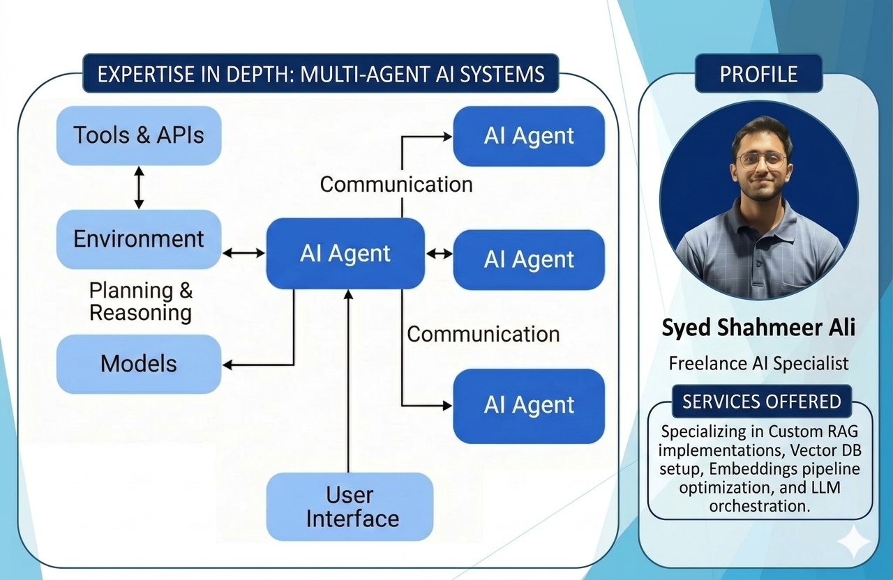 I build production-ready AI agents designed for real business environments. My systems include proper architecture, tool integration, memory handling, error management, and scalability not experimental prototypes.