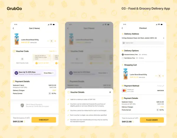 The platform is built to simplify online grocery shopping while helping businesses manage products, customer orders, and inventory in an organized digital system. The mobile application can include essential ecommerce features such as product listings, category browsing, search filters, cart management, secure checkout, promotional vouchers, and order confirmation notifications.
