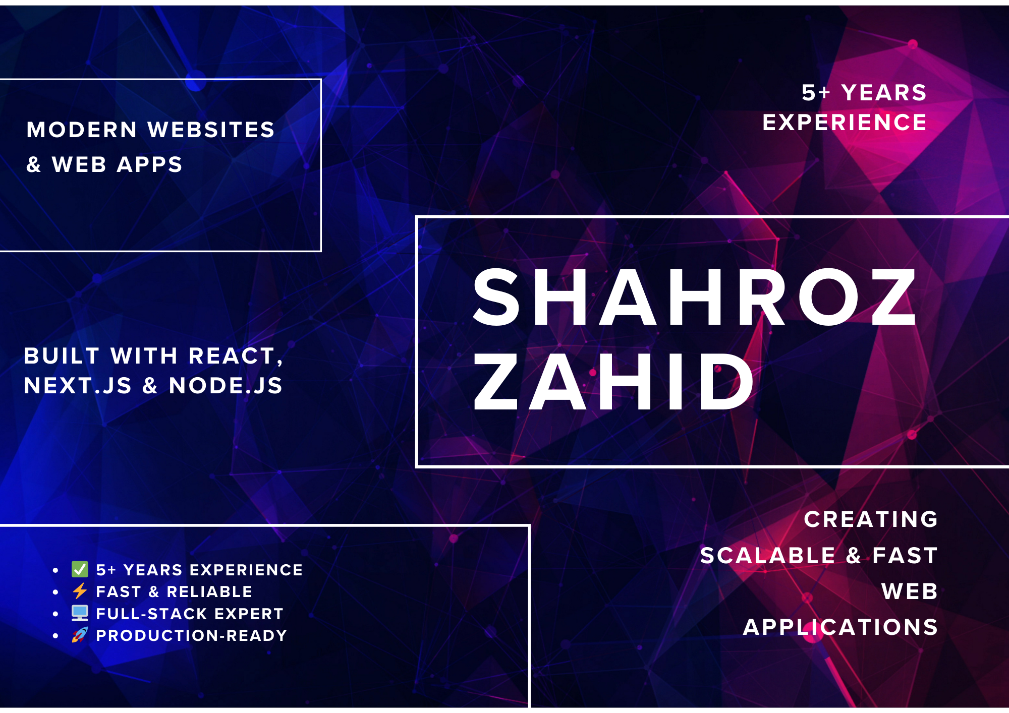 Hi, I’m Shahroz Zahid, a full-stack developer with 5+ years of experience building production-ready applications.