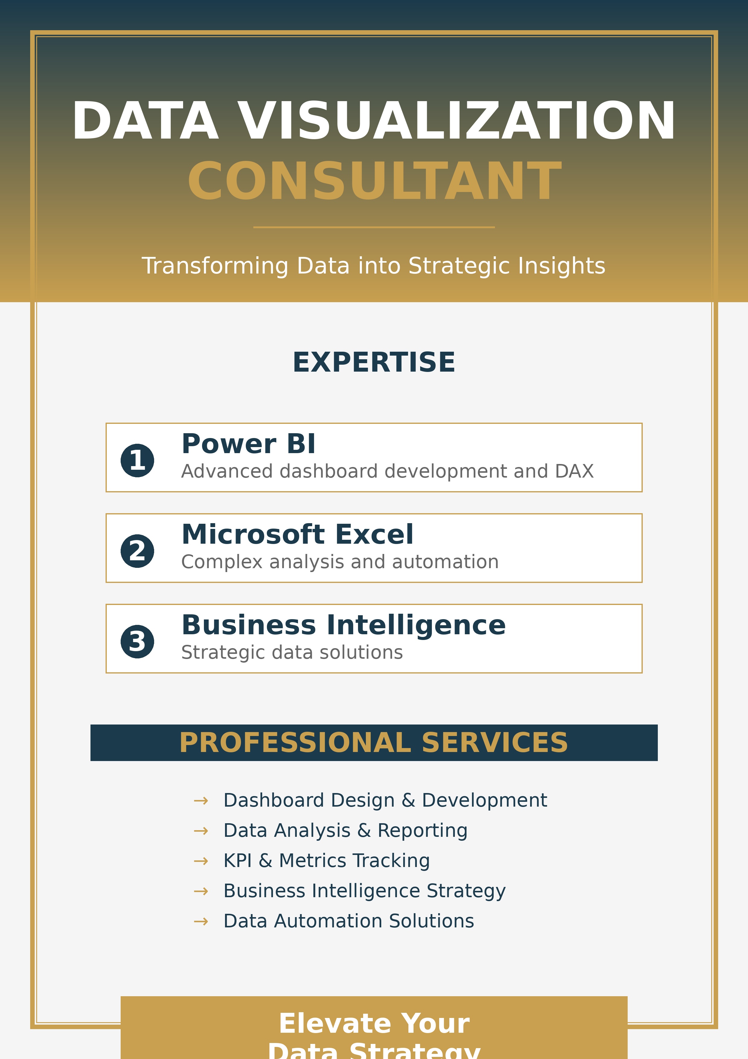 This service is ideal for sales tracking financial reporting inventory management marketing analytics customer insights operational dashboards or any project that requires turning raw data into actionable information.