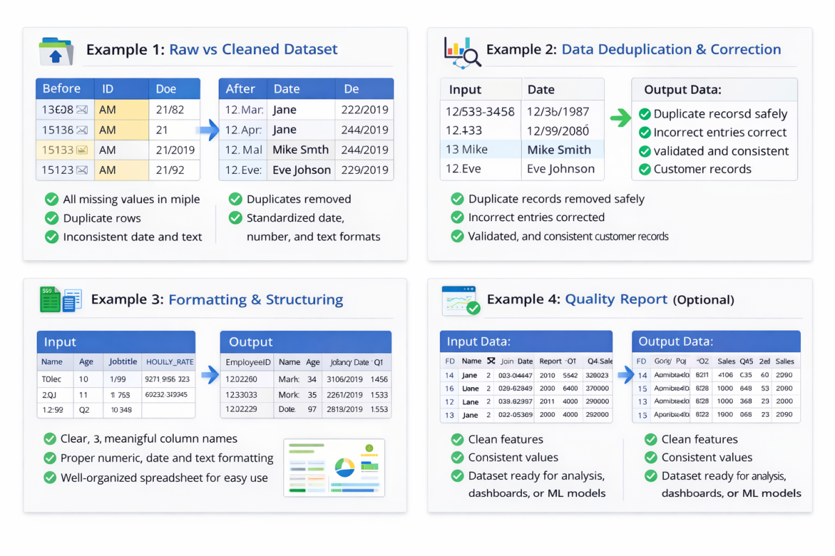 I will clean, preprocess, and organize your raw data into a high-quality, analysis-ready dataset. If your data has missing values, duplicates, inconsistencies, or formatting issues, I’ll fix them accurately and efficiently.