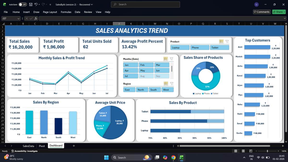 I specialize in creating custom Excel dashboards that help businesses track performance, identify trends, and make better decisions using: