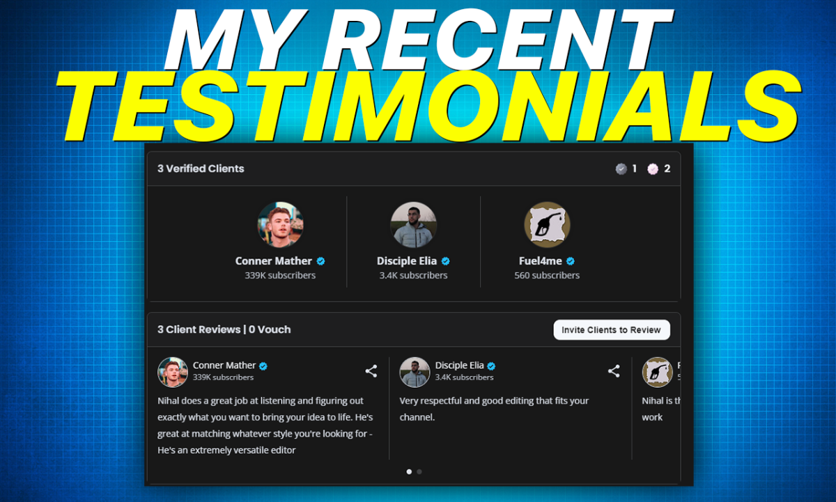 I’ve worked with YouTubers across different styles including talking-head videos, vlogs, podcasts, lifestyle content, and educational videos. Every edit is tailored to your content and audience, not a one-size-fits-all template.