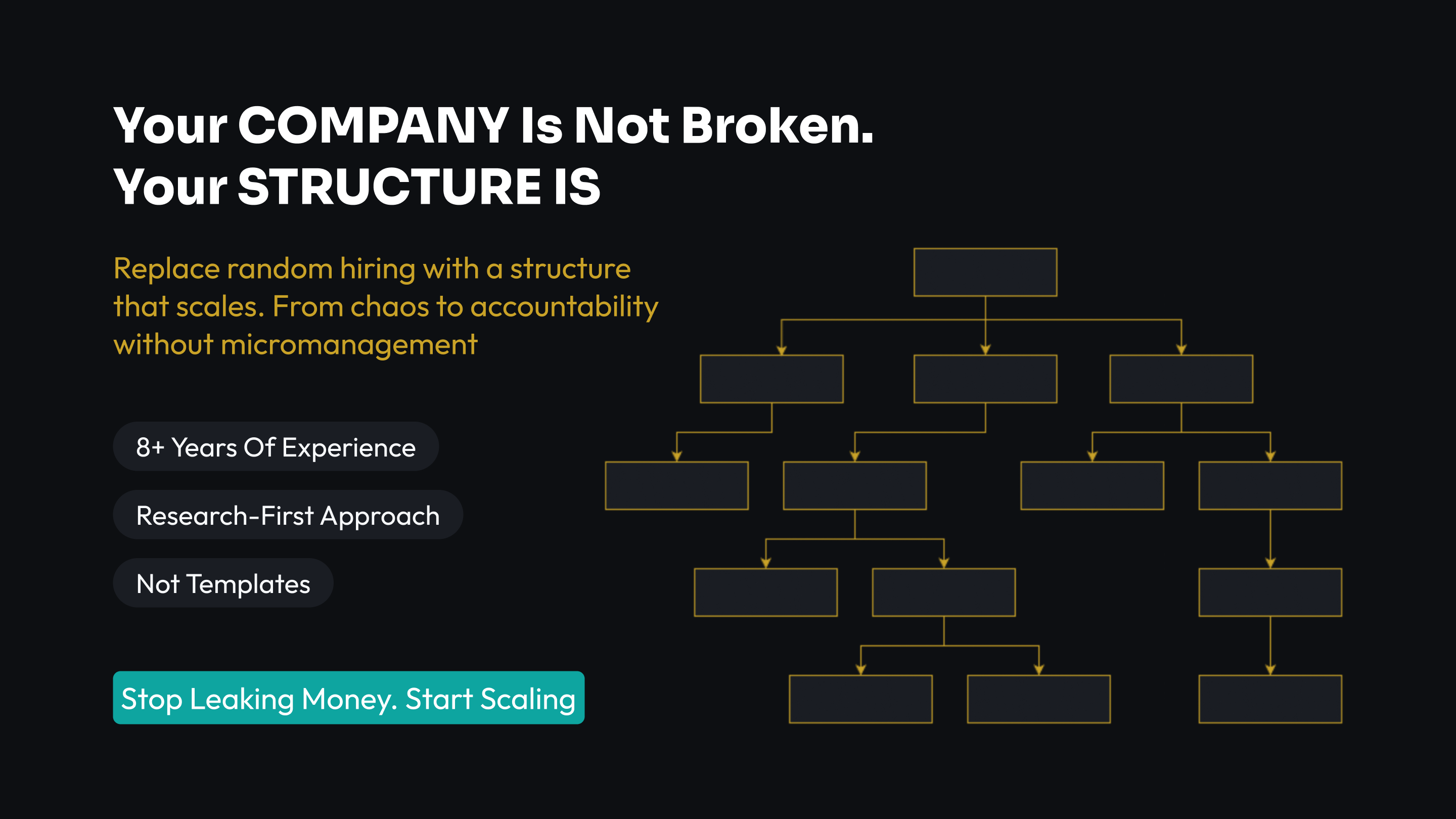 Send your headcount, growth target, and biggest people bottleneck. I will tell you exactly where your current structure is helping you, where it is hurting you, and what to fix first.