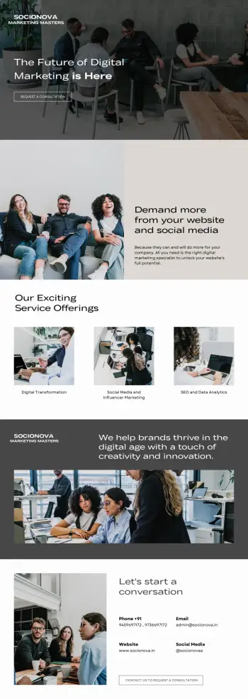 Welcome to SocioNova SocioNova is a dynamic digital creative company transforming how businesses grow, communicate, and build trust online. We help brands elevate their presence across major platforms with measurable success. What we do We specialize in review management for all OTAs, online marketing, pay-per-click advertising, email marketing, and social media optimization—providing comprehensive digital solutions for businesses of all sizes. Why it matters