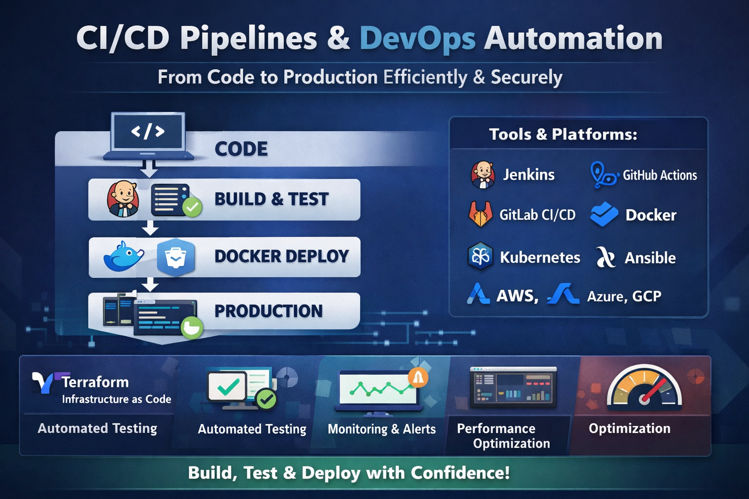 As a DevOps Engineer, I design and implement modern CI/CD pipelines that turn chaotic deployments into reliable, repeatable systems.