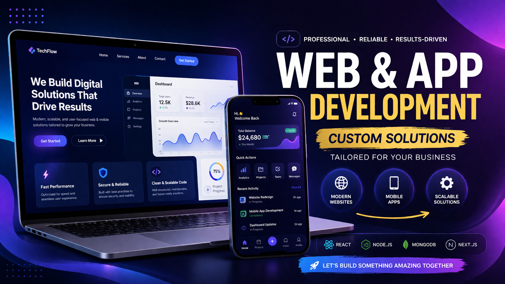 I’m a Full-Stack Developer helping startups and businesses turn ideas into digital products. I build websites, mobile apps, e-commerce platforms, and custom software with a focus on performance, scalability, and user-friendly design, ensuring reliable and on-time delivery.