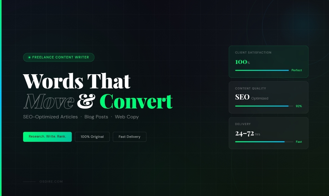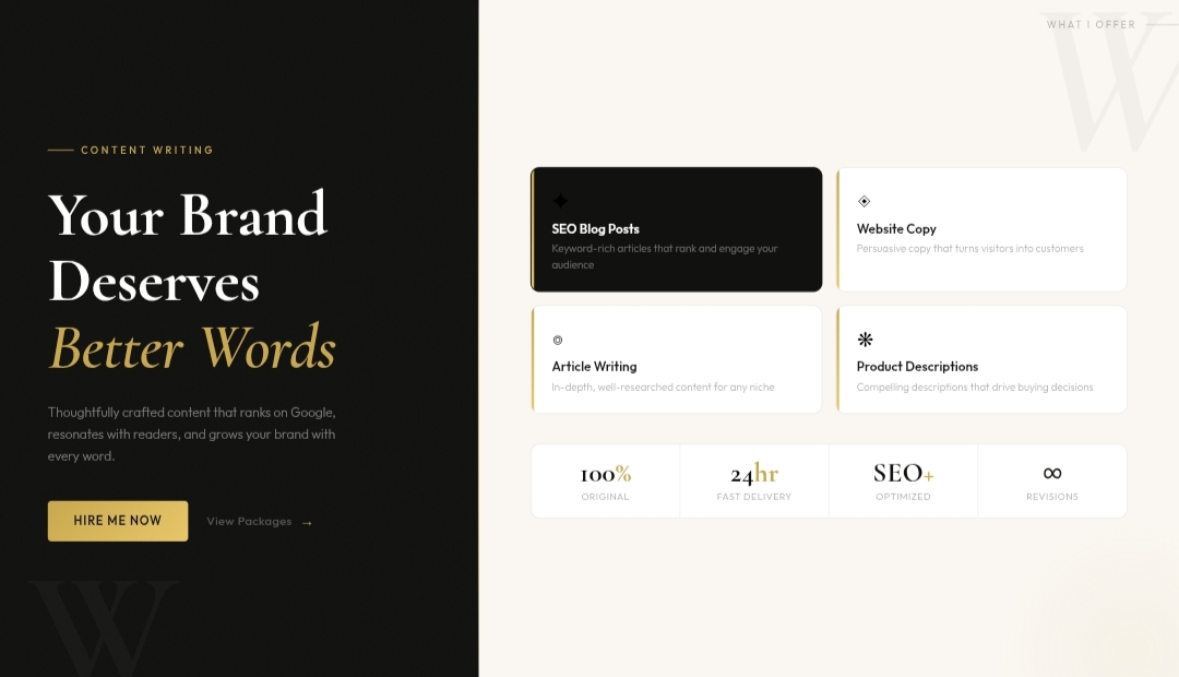 I do not believe in generic, copy-paste work. When you order from me, you get content that sounds human, adds real value, and makes your brand stand out.