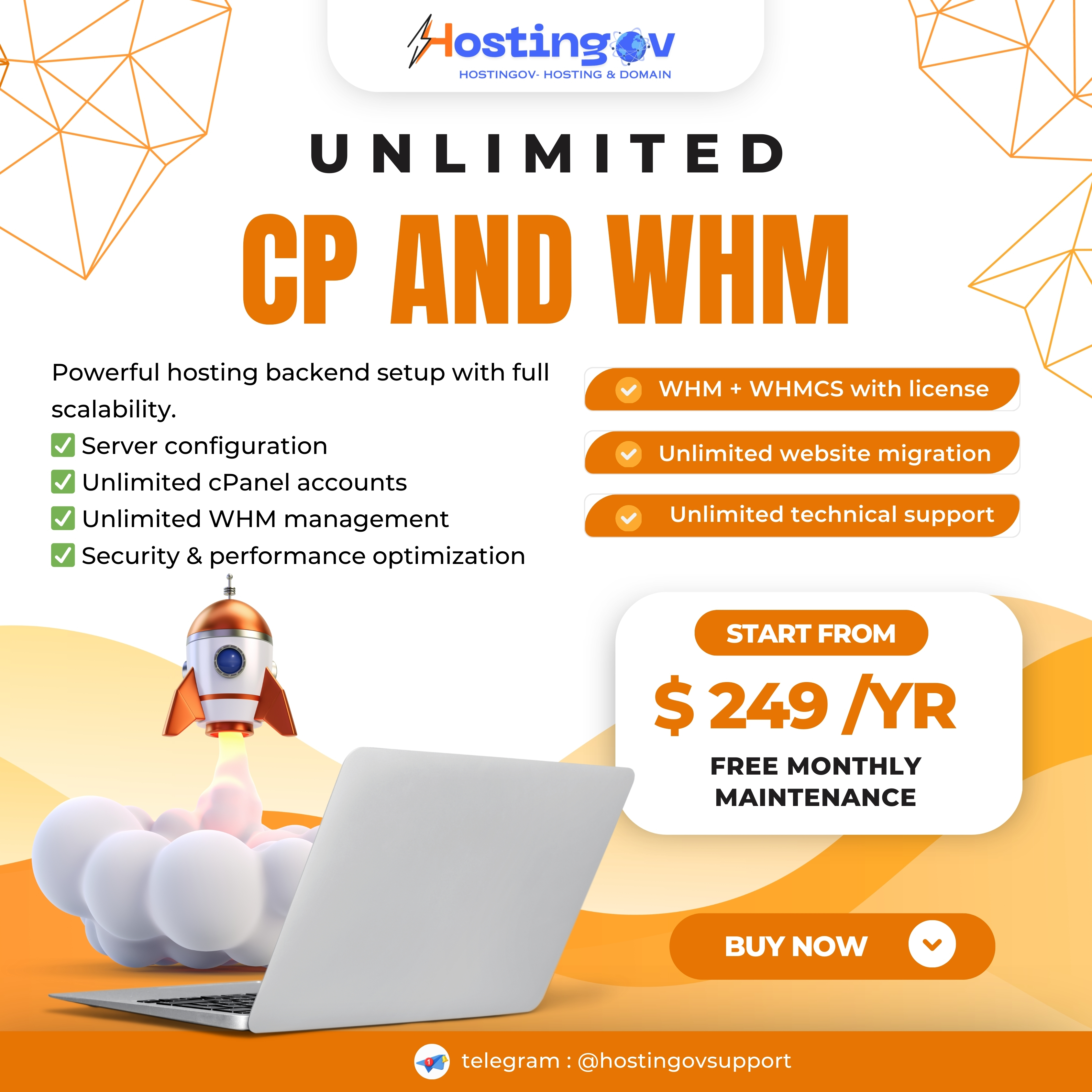 Server WHM/WHMCS license, unlimited cPanel, migration, backend only.