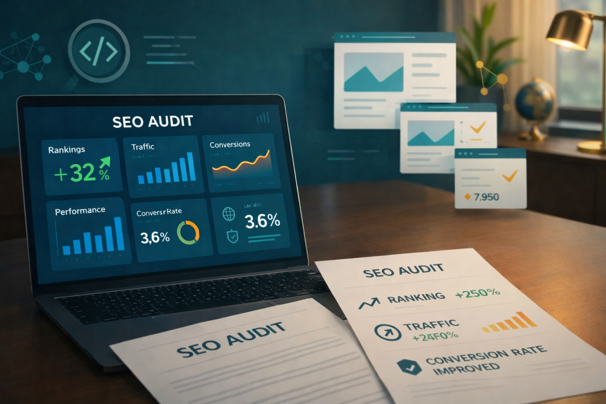 I analyze all critical ranking factors: On-page SEO (title tags, meta descriptions, keyword optimization), Technical SEO (site speed, mobile-friendliness, indexation), Backlink profile & authority,