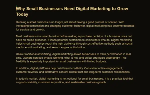 If you want content that sounds human, communicates clearly, and actually serves a purpose, this service is for you.I start with topic and keyword research to understand what your audience is actually searching for. Then I craft content with optimized headings (H1–H3), clean formatting, internal logic, and natural keyword placement. The goal is simple: content that ranks, gets read, and holds attention.
