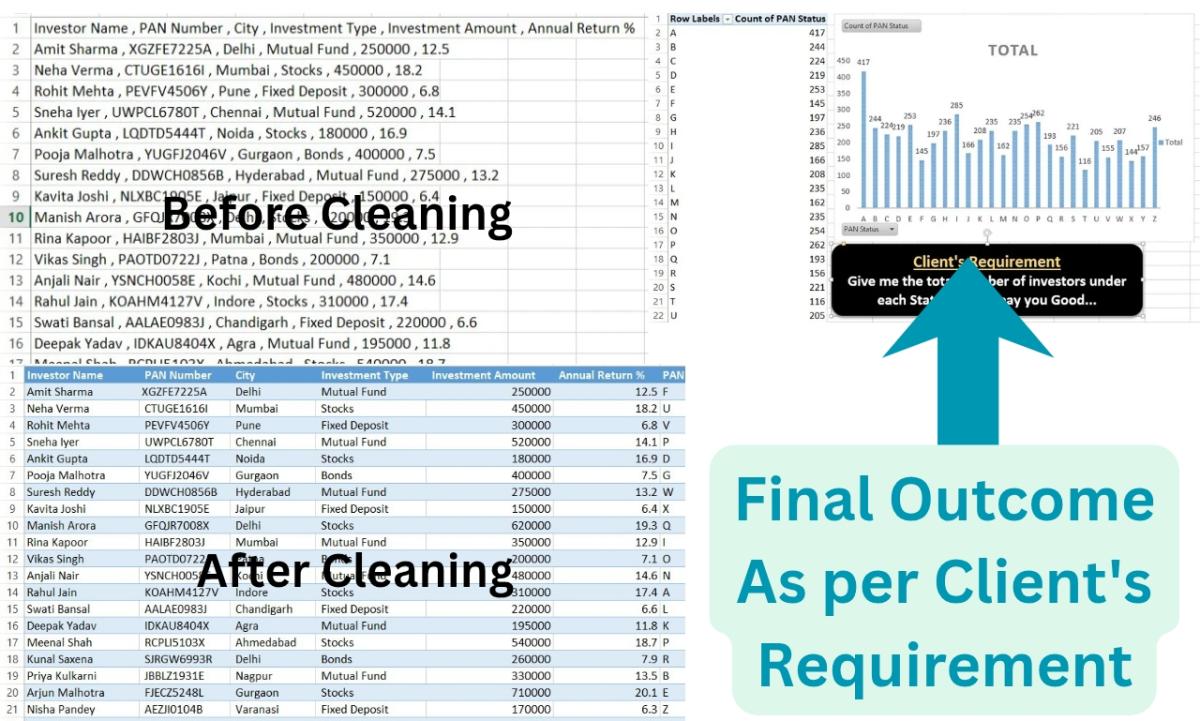 With this service, I design custom Excel dashboards tailored to your specific requirements. This includes using pivot tables, charts, and formulas to provide clear insights and summarize complex data. I can create city-wise or sales representative-wise sheets, automate calculations, and design layouts that make your data visually appealing and easy to interpret.