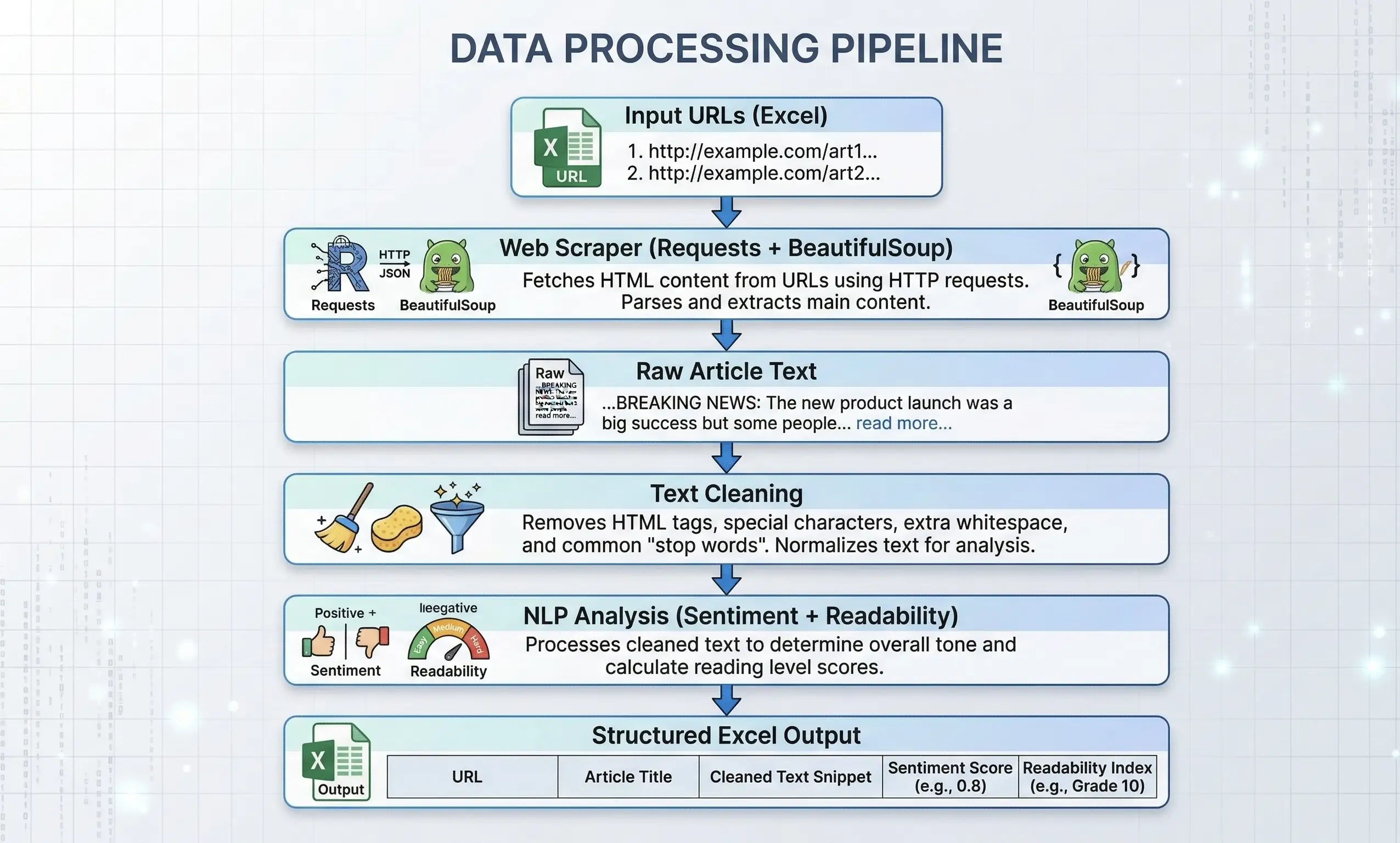 - You will receive an organized dataset containing multiple metrics calculated from the content of each URL. These metrics may include readability scores, sentiment indicators, word statistics, and complexity measurements. This file allows you to filter, sort, and explore the data easily.