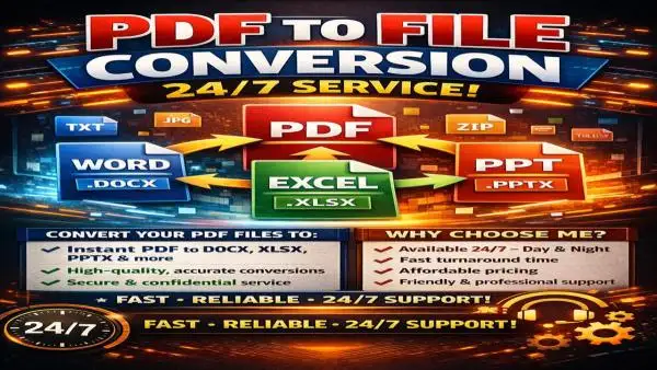 Are you tired of messy, unorganized data after converting a PDF? I am an Excel Expert and Data Specialist with 3+ years of experience at Dollar Industries Ltd. I provide professional, manual conversion services to ensure your data remains structured, accurate, and ready for use