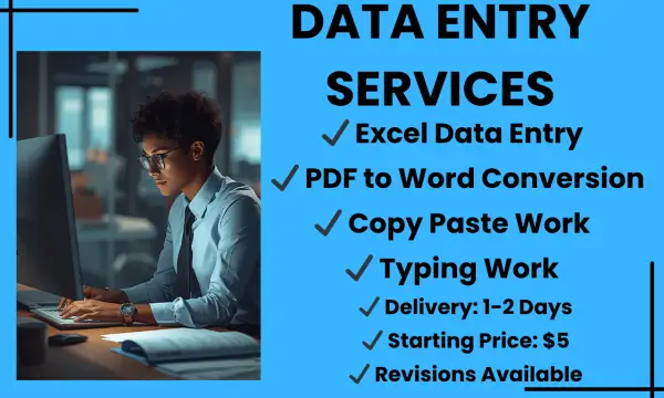 I offer professional data entry services with fast and accurate results. I help individuals and businesses manage their data efficiently. My work includes Excel data entry, copy paste tasks, PDF to Word or Excel conversion, typing work, and basic web research.