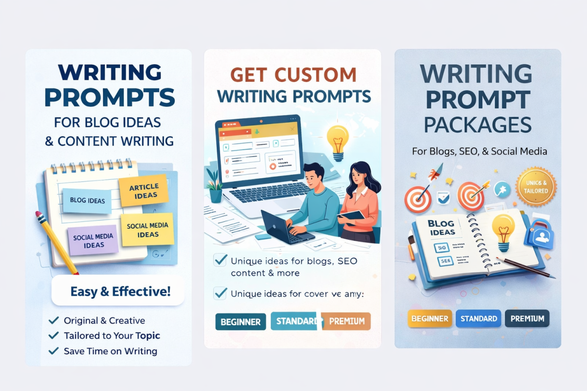 I will create high-quality, unique, and engaging writing prompts tailored to your topic. These prompts will help you generate blog ideas, article ideas, social media content concepts, and creative writing inspiration.