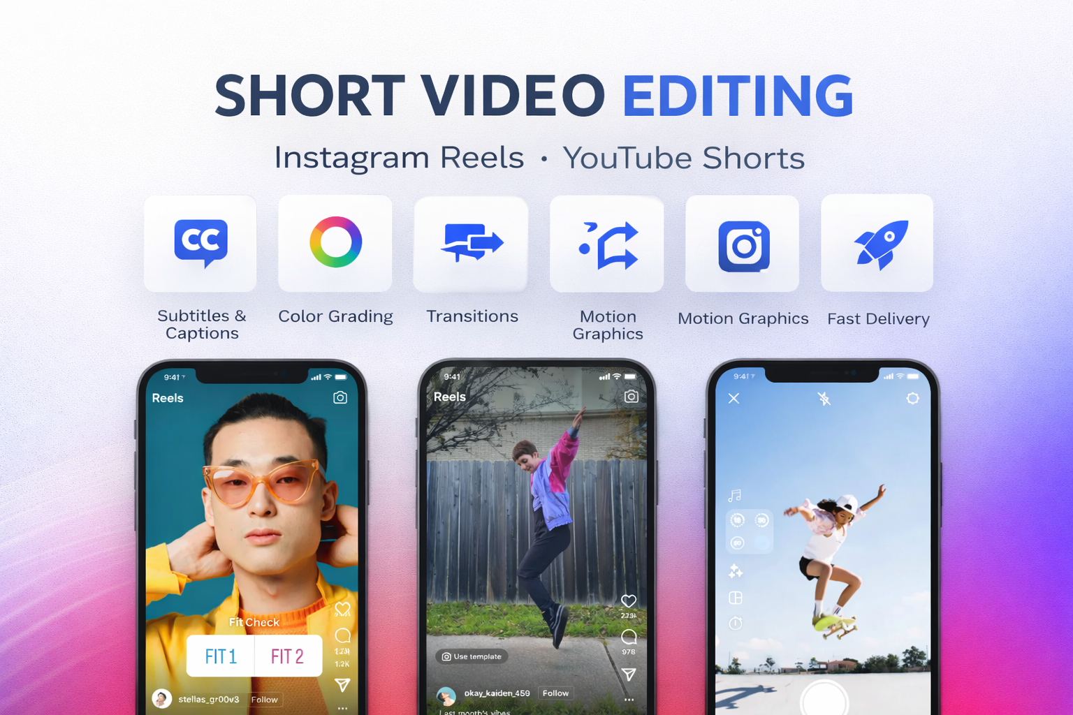 This service is ideal for content creators, influencers, brands, and businesses who want professional-looking reels for Instagram, YouTube Shorts, and other short-form platforms. I focus on smooth cuts, engaging transitions, subtitles, background music, color correction, and proper pacing to match current social media trends while maintaining your unique style and brand identity.