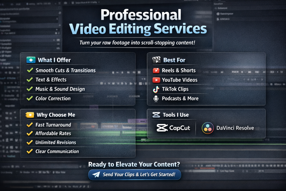Looking for a reliable video editor who can turn raw footage into engaging, scroll-stopping content? You’re in the right place.