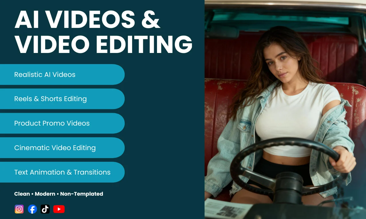 Whether you need a product ad, brand promo, launch teaser, or social media content, the final output will be crafted to look polished, intentional, and market ready.