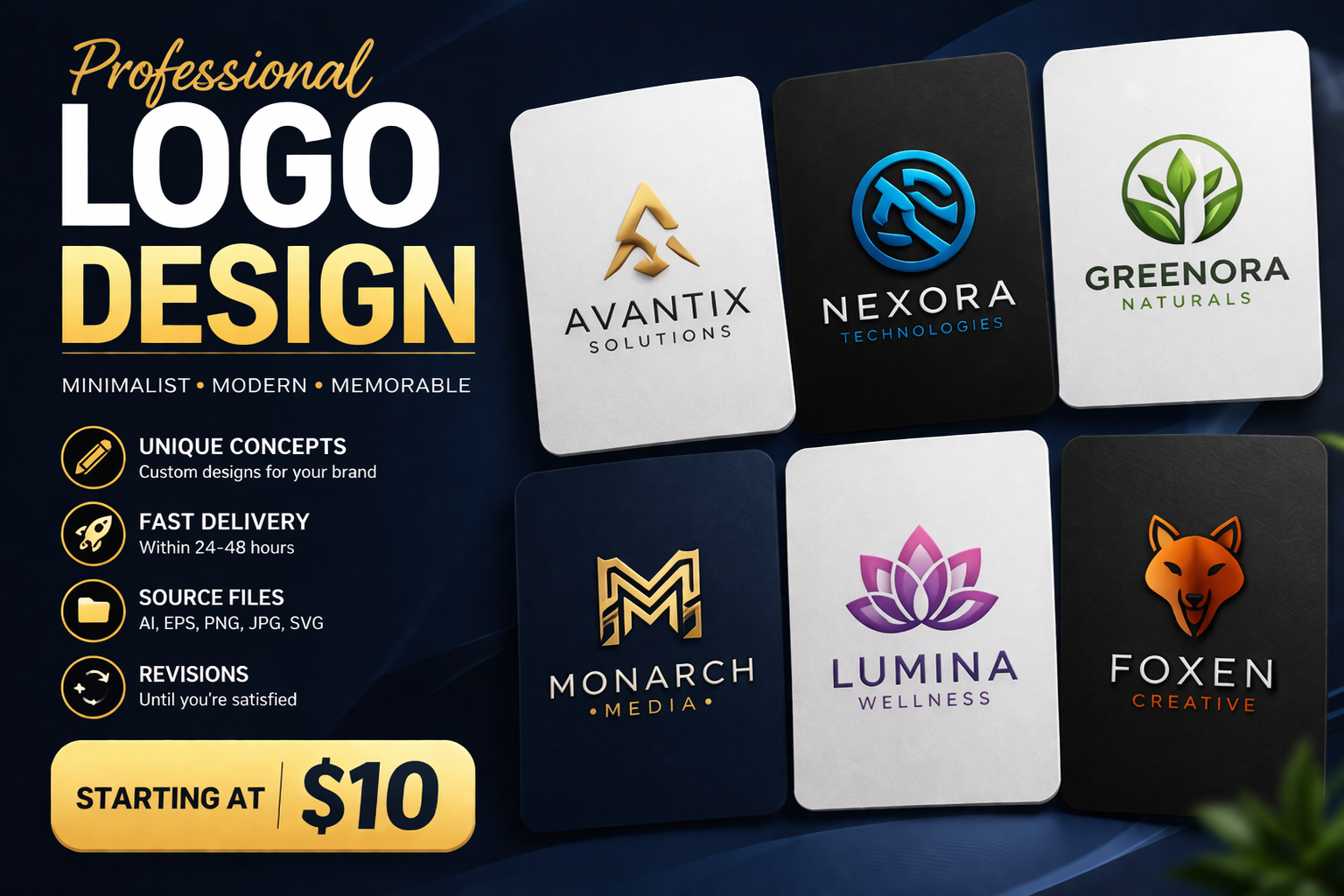 With this offer, I will design a high-quality logo tailored to your specific needs. Whether you are a startup, small business, personal brand, or social media creator, I will provide a design that enhances your brand image and gives it a professional look.